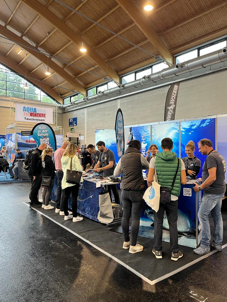 At the end of September 2023, Friedrichshafen on Lake Constance once again became the center for all diving enthusiasts (and those who want to become one) in the DACH region. In one of the smaller exhibition halls numerous exhibitors – and of course SHARKPROJECT- found space to offer the visitors a varied program. Our team of eight German, Austrian and Swiss club members mastered the four days of the fair with flying colors.